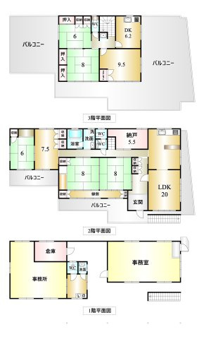LDK 20.0帖 1室 / 和室 8.0帖 2室 / 洋室 7.5帖 1室 / 和室 6.0帖 1室 / DK 6.2帖 1室 / 洋室 9.5帖 1室 / 和室 8.0帖 1室 / 和室 6.0帖 1室 / S(納戸) 5.5帖 1室 / |