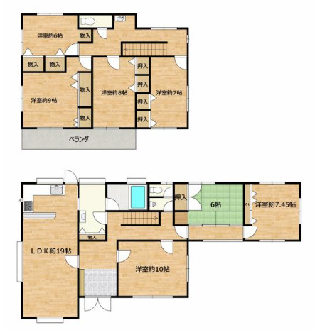 LDK 19.0帖 1室 / 洋室 10.0帖 1室 / 洋室 7.4帖 1室 / 和室 6.0帖 1室 / 洋室 9.0帖 1室 / 洋室 8.0帖 1室 / 洋室 7.0帖 1室 / 洋室 6.0帖 1室 / |