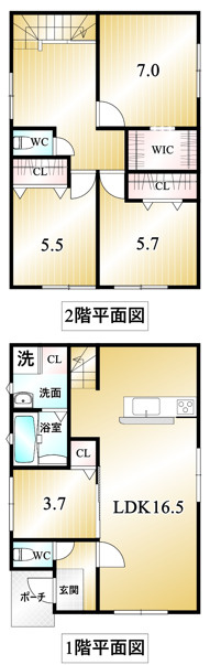 16.5帖 1室 / 3.7帖 1室 / 7.0帖 1室 / 5.7帖 1室 / 5.5帖 1室 / |