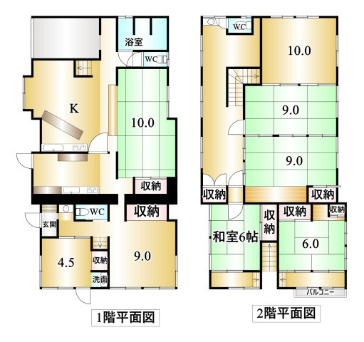 K / 和室 10.0帖 1室 / 洋室 9.0帖 1室 / 洋室 4.5帖 1室 / 和室 9.0帖 2室 / 和室 6.0帖 2室 / 洋室 10.0帖 1室 / |