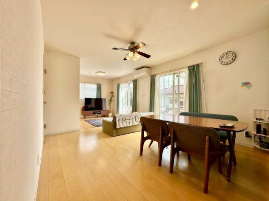 開放的なウッドデッキと対面キッチンが魅力。手入れ不要で即入居可能、収納力も充実した快適な住まいです。