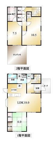 LDK 18.0帖 1室 / 和室 6.0帖 1室 / 洋室 10.5帖 1室 / 洋室 7.5帖 1室 / S(納戸) 3.0帖 1室 / |
