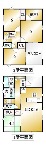 LDK 16.0帖 1室 / 和室 4.5帖 1室 / 洋室 8.0帖 1室 / 洋室 6.0帖 2室 / S(納戸) 3.0帖 1室 / |
