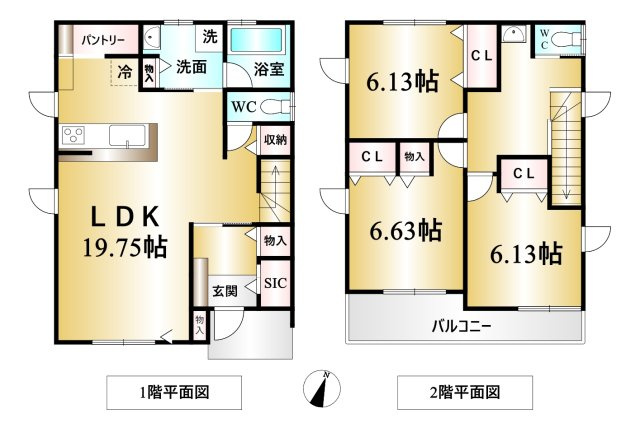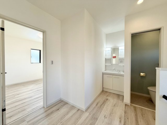 広々3LDK新築戸建て♪各居室6帖以上あり寝室にも子供部屋にも使い勝手◎2階にも洗面があり朝の身支度にも大変便利!駐車場4台駐車可能!来客時も心配なし♪嬉しい収納豊富♪