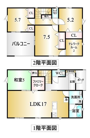 LDK 17.0帖 1室 / 和室 5.0帖 1室 / 洋室 7.5帖 1室 / 洋室 5.7帖 1室 / 洋室 5.2帖 1室 / |