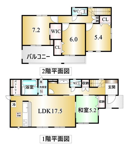 LDK 17.5帖 1室 / 和室 5.2帖 1室 / 洋室 7.2帖 1室 / 洋室 6.0帖 1室 / 洋室 5.4帖 1室 / |