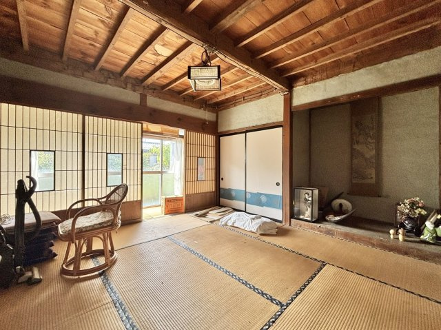眺望良好で梁が立派な古民家です。南向きで明るく、全居室6帖以上のゆったり空間が魅力です。和室の続き間や広いお庭もあり、心落ち着く昔ながらの住まい。駐車5台以上可能で、ご家族や来客も安心して迎えられます。