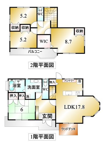 LDK 17.8帖 1室 / 和室 6.0帖 1室 / 洋室 8.7帖 1室 / 洋室 5.2帖 2室 / |