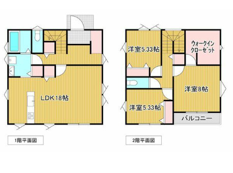 LDK 18.0帖 1室 / 洋室 8.0帖 1室 / 洋室 5.3帖 2室 / |