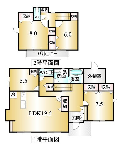 LDK 19.5帖 1室 / 洋室 7.5帖 1室 / 洋室 5.5帖 1室 / 洋室 8.0帖 1室 / 洋室 6.0帖 1室 / |