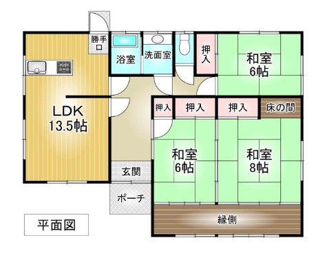 LDK 13.5帖 1室 / 和室 8.0帖 1室 / 和室 6.0帖 2室 / |