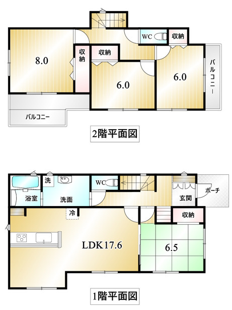 LDK 17.6帖 1室 和室 6.5帖 1室 洋室 8.0帖 1室 洋室 6.0帖 2室 |