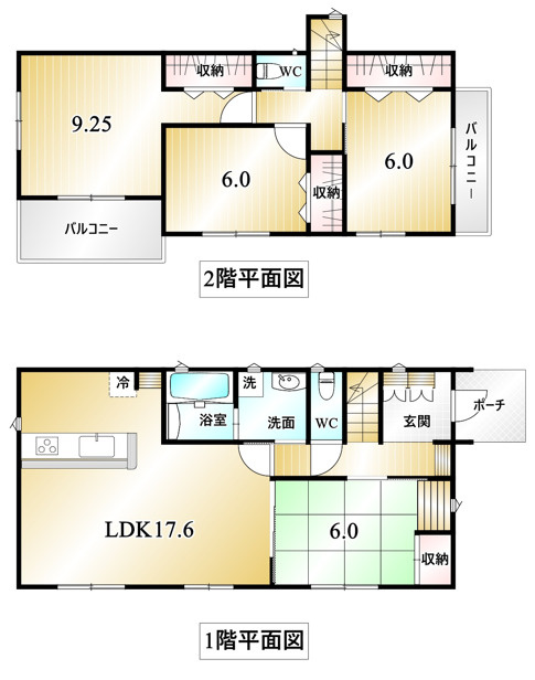 LDK 17.6帖 1室 和室 6.0帖 1室 洋室 9.2帖 1室 洋室 6.0帖 2室 |