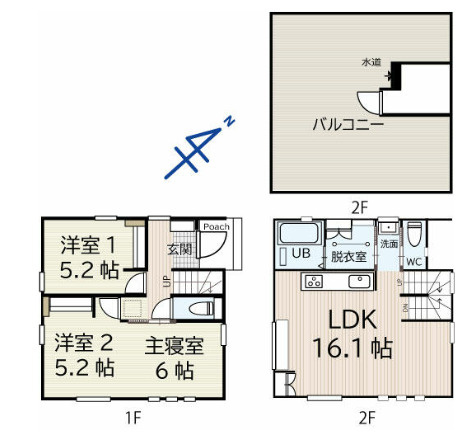 洋室 6.0帖 1室 / 洋室 5.2帖 2室 / |