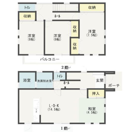 LDK 14.5帖 1室 / 和室 4.5帖 1室 / 洋室 7.5帖 1室 / 洋室 6.0帖 2室 / |