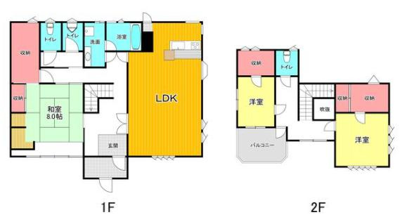LDK 1室 / 和室 8.0帖 1室 / 洋室 2室 / |