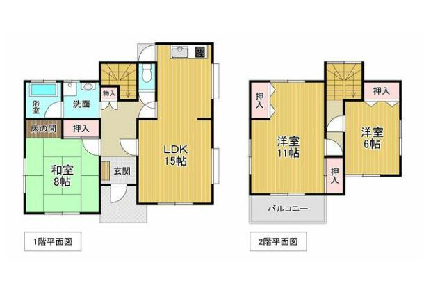 LDK 15.0帖 1室 / 和室 8.0帖 1室 / 洋室 11.0帖 1室 / 洋室 6.0帖 1室 / |