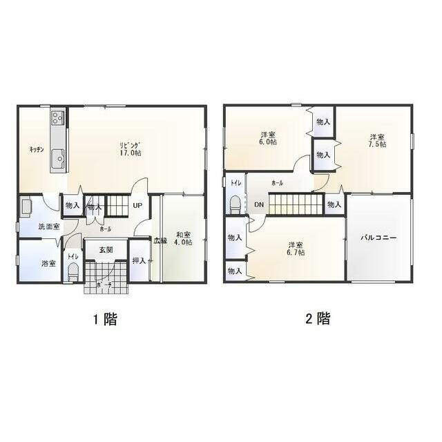 LDK 17.0帖 1室 / 和室 4.0帖 1室 / 洋室 7.5帖 1室 / 洋室 6.7帖 1室 / 洋室 6.0帖 1室 / |