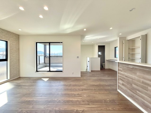 【居間・リビング】開放感あふれる20帖の広々リビングで、家族団らんもゆったり快適。
