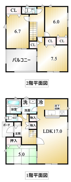 LDK 17.0帖 1室 / 和室 5.0帖 1室 / 洋室 7.5帖 1室 / 洋室 6.7帖 1室 / 洋室 6.0帖 1室 / |