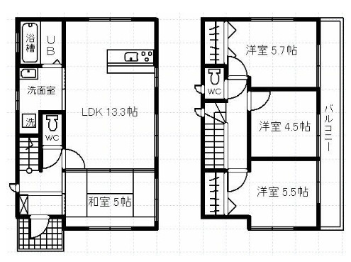 LDK 13.3帖 1室 / 和室 5.0帖 1室 / 洋室 5.7帖 1室 / 洋室 5.5帖 1室 / 洋室 4.5帖 1室 / |