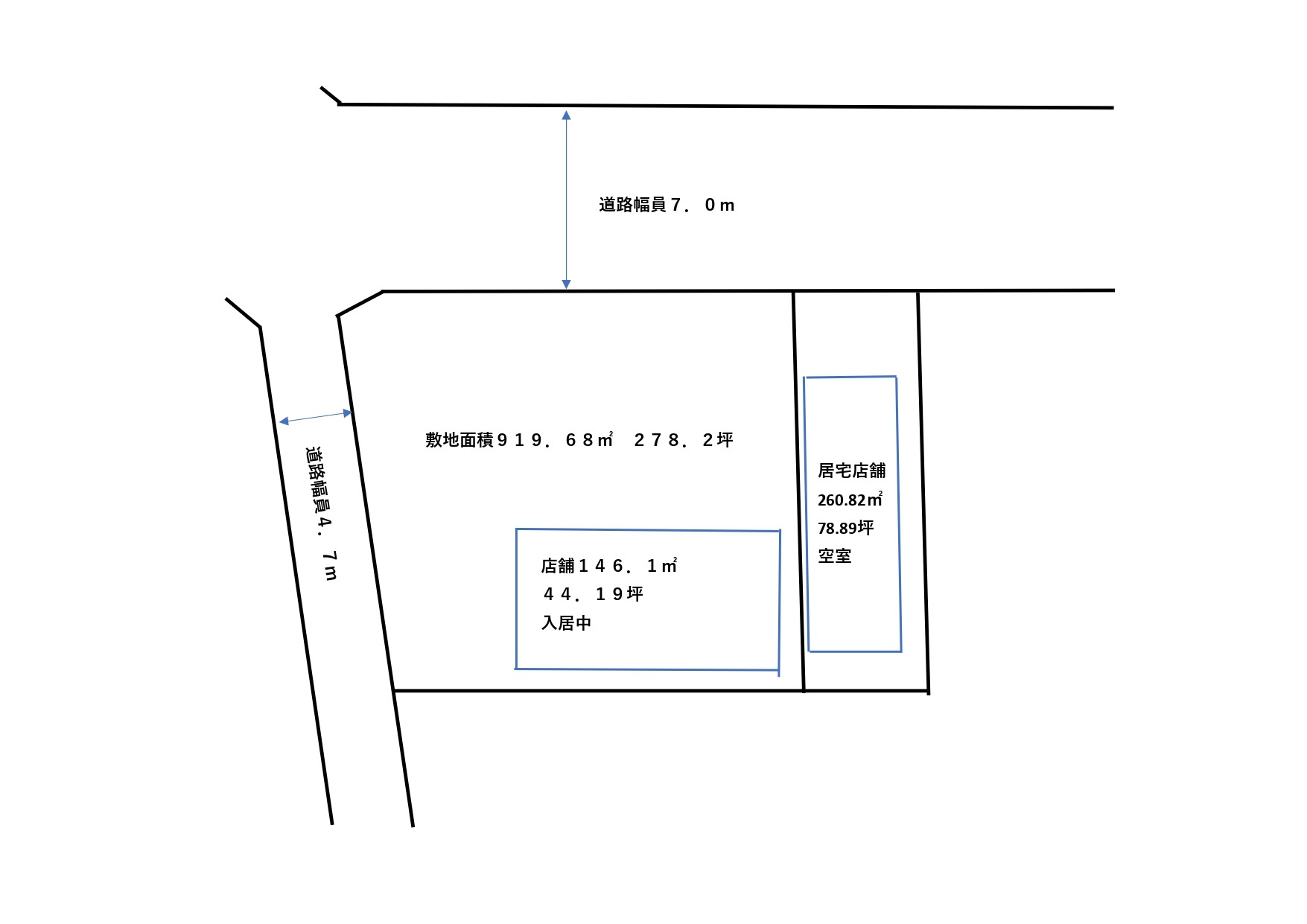 | 接道状況 | 角地 (北側 公道7.0m) (西側 公道4.7m) | 私道負担面積 | |
