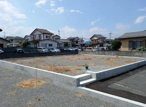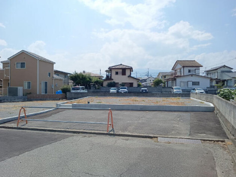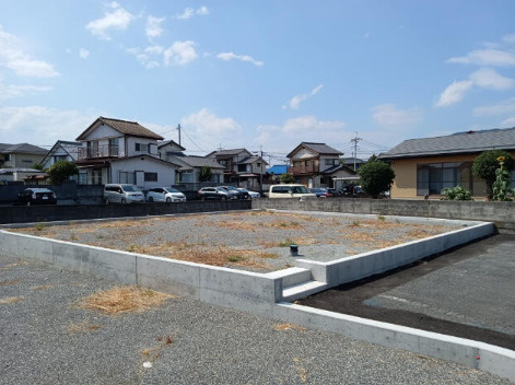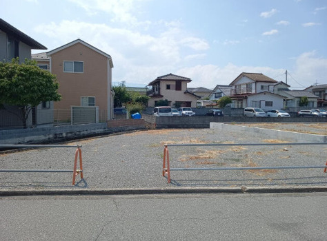 甲府市千塚の平坦な更地。上下水道・プロパン完備、建築条件なし。生活便利なスーパー近くで、第一種中高層住居専用地域の宅地です。