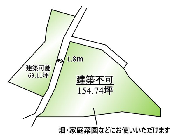 | 接道状況 | 一方 (東側 私道1.8m) | ||