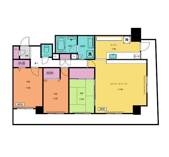 LDK 15.5帖 1室 / 洋室 8.0帖 1室 / 和室 6.0帖 1室 / 洋室 6.0帖 1室 / |