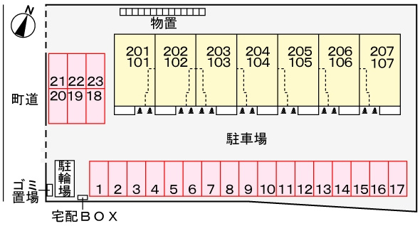 | 駐車場 | 空き台数:23台 、 空有、月額料金:3,300円(税込) | ||